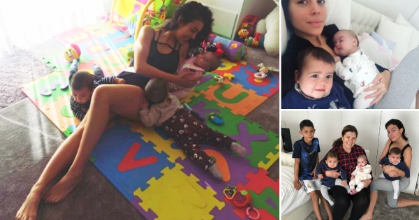 Атрактивната Шпанка недиускутабилно ужива во мајчинството и друштвото на малите бебенца. На една од фотографиите таа позира со близначињата Ева и Матео и ќеркичката Алана Мартина во детска соба.