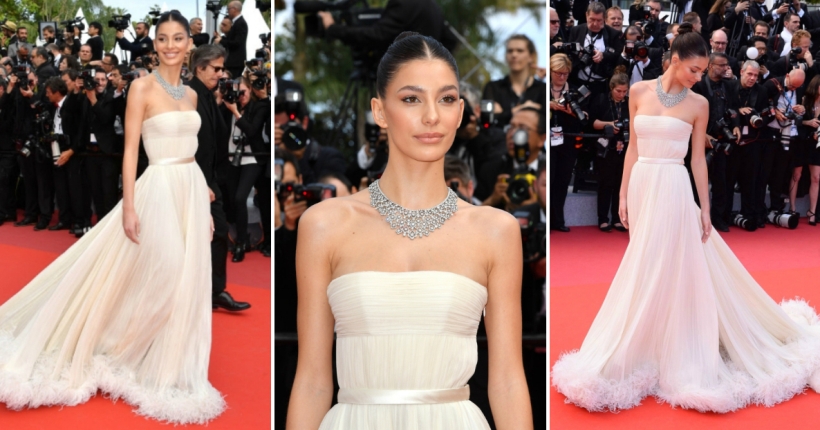 Камила Морон, девојката на Леонардо Дикаприо, со беспрекорно елегантен изглед блескаше вечерва на црвениот тепих во Кан.
