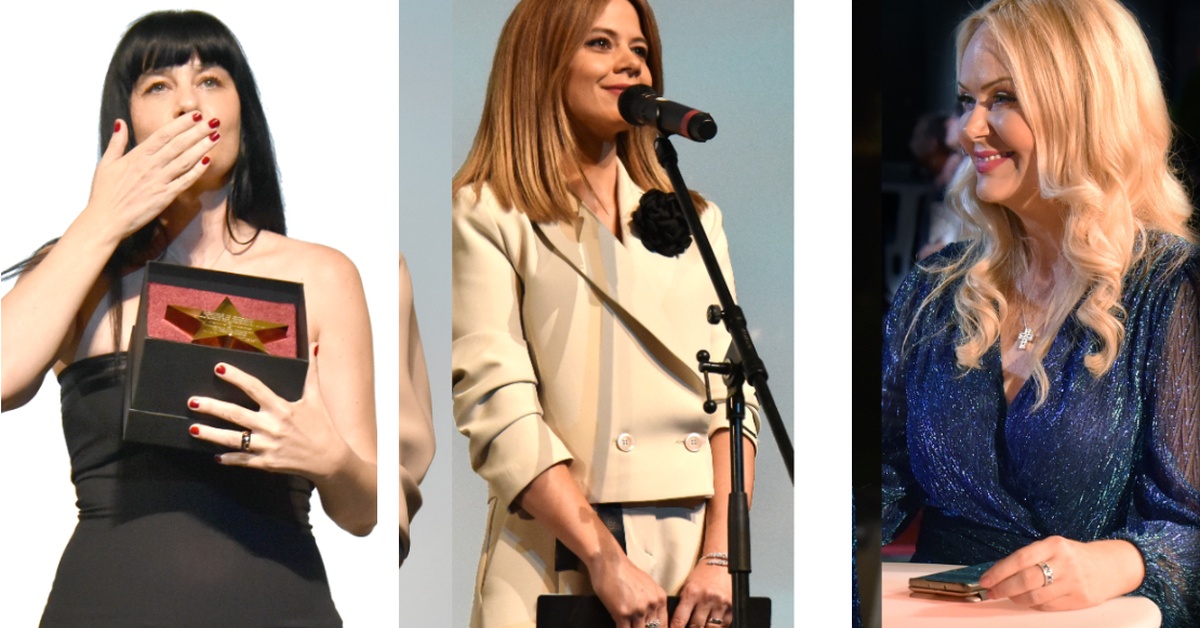 Јелена Јованова – македонска актерка и водителка на овогодинешното свечено отворање на фестивалот носеше белегзија и прстен од колекцијата Mimosa на Damiani.