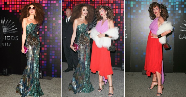 39-годишната адвокатка буквално блескаше во креација од брендот „Halpern“. Својот ретро стајлинг, Амал го комплетираше со афро фризура, големи обетки, впечатливи очила за сонце и розова чантичка.