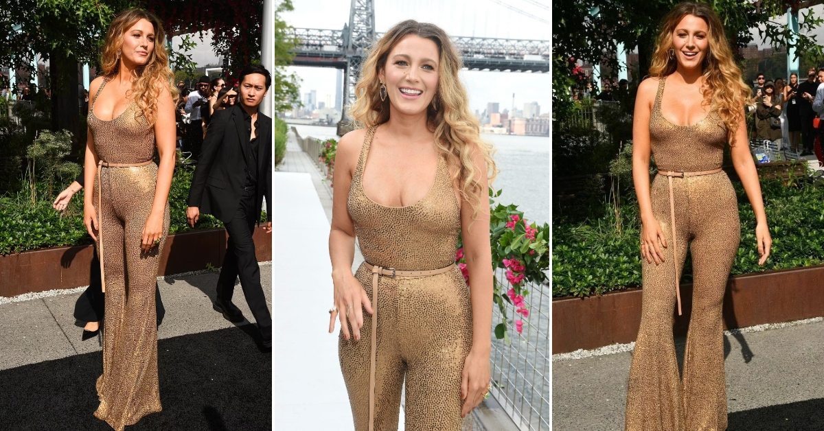 Диско кралица: Блејк Лајвли атрактивна во златен комбинезон седум месеци по раѓањето на четвртото дете