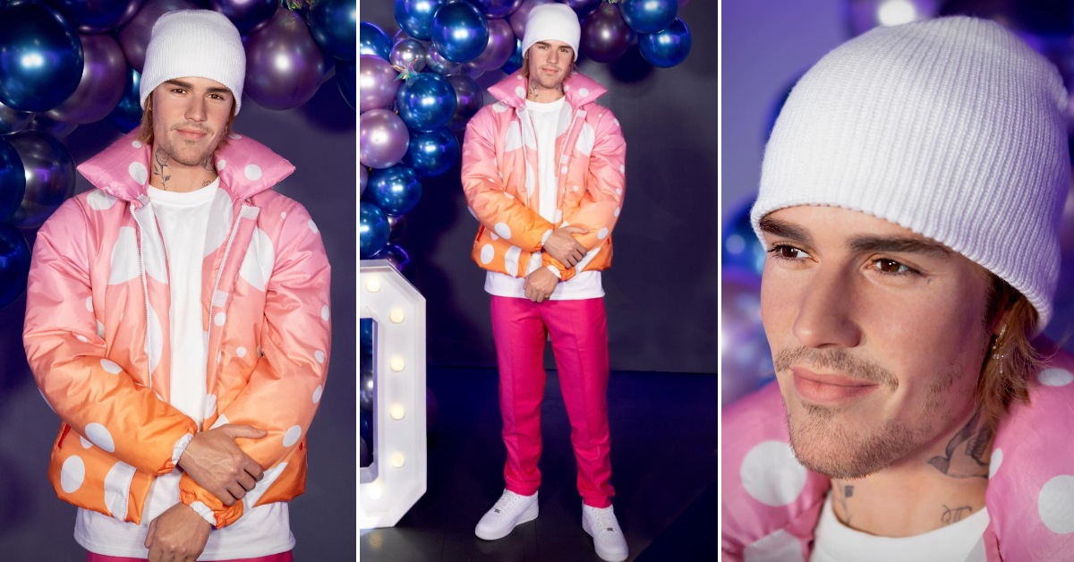 Фигурата содржи детали кои се карактеристични за Џастин, како што е неговата тетоважа на вратот, како и стајлингот кој пејачот го носи во спотот од 2021 година за песната „Peaches“.