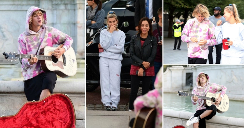 Џастин Бибер накратко стана уличен музичар и ги изненади минувачите пред Бакингемската палата со изведба на неколку песни за неговата нова сопруга Хејли Болдвин.
