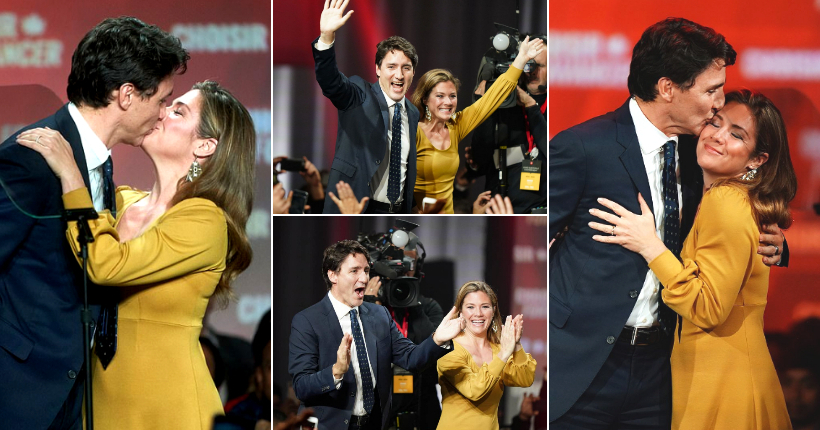 Џастин Трудо победи на изборите во Канада, сопругата Софи со бакнеж му ја честиташе победата