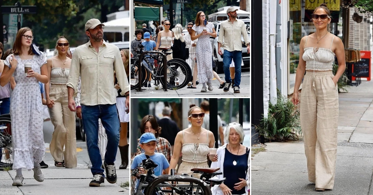 52-годишната пејачка за рака го држеше 10-годишниот Семјуел додека 50-годишниот актер чекореше покрај ќерката Вајолет. Зад нив одеа ќерката на Бен, Серафина, ќерката на Џеј Ло, Еми, како и мајката на Бен, Крис Ен.