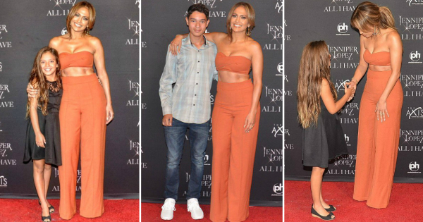 На фотографиите, славната музичка ѕвезда е облечена во портокалова комбинација со краток горен дел. Изразените стомачни мускули на Лопез само го потврдуваат кажаното од нејзиниот менаџер.