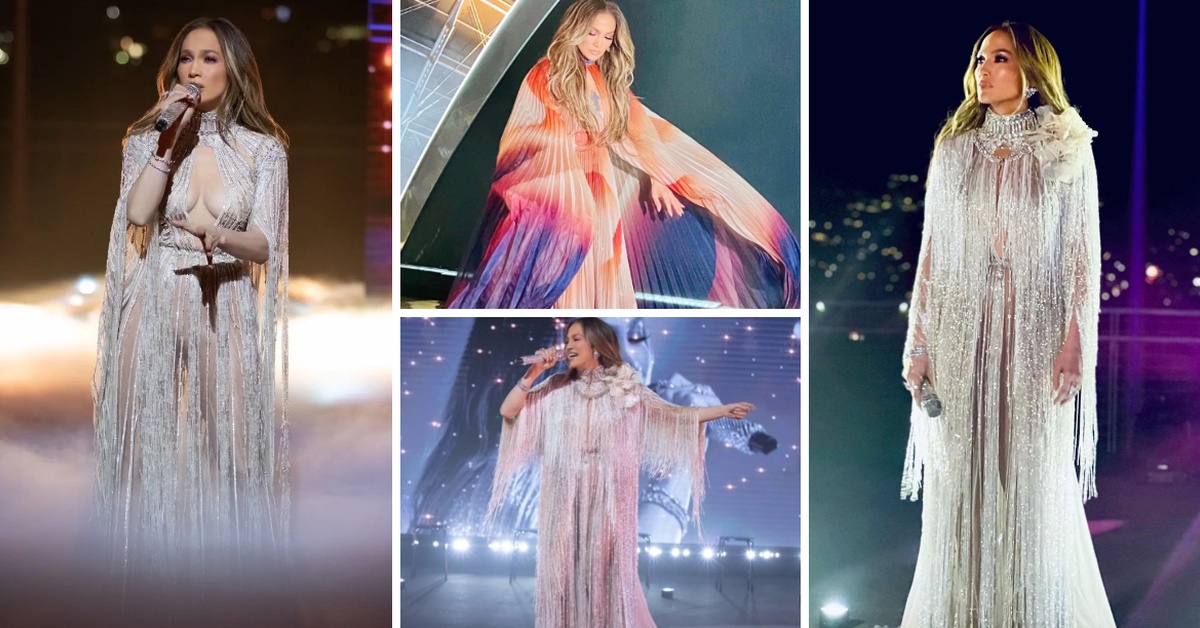 На сцената, 52-годишната ѕвзеда блескаше во две креации до Ели Сааб. Моделите се дел од колекцијата висока мода пролет/лето 2022 на либанскиот дизајнер.