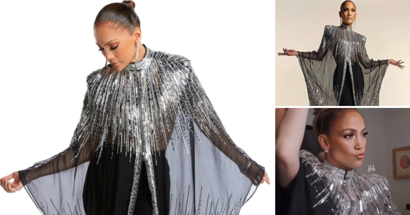 Блескавата наметка е со потпис на Оливие Рустан од француската модна куќа Balmain.