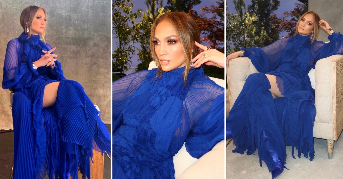 Славната актерка и пејачка носеше креација од Александар Воте во кралска сина боја.