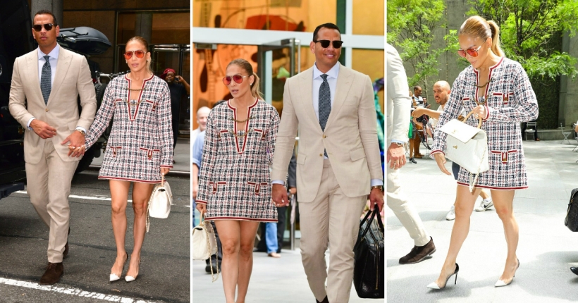 49-годишната пејачка и актерка избра фустан од твид од модната куќа Гучи за нејзиното излегување со саканиот Алекс Родригез. Модерниот стајлинг таа го надополни со обувки од Џанвито Роси и чанта од Шанел.