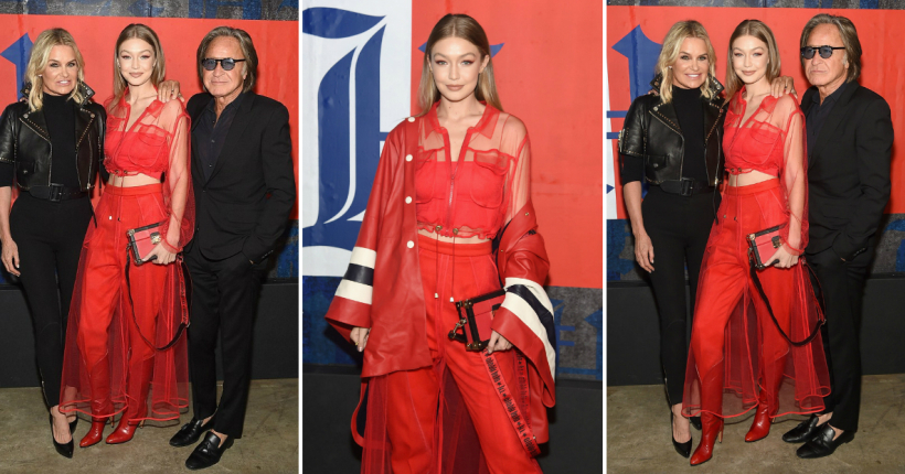 Џиџи беше придружувана од татко ѝ Мухамед и мајка ѝ Јоланда. Тоа што нејзините родители се разведени, не беше пречка за тие да позираат заедно со неа пред фоторепортерите.