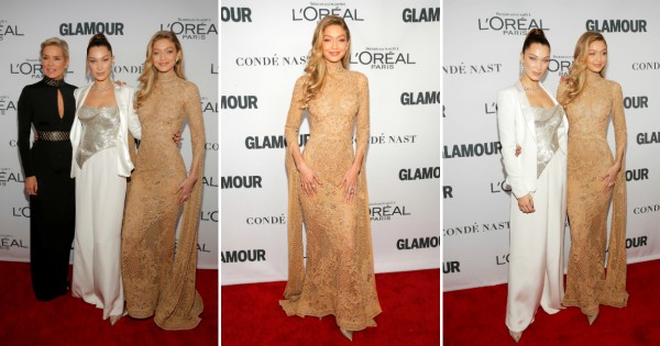 Џиџи Хадид во златен фустан од Зухаир Мурад на „Жена на годината“ на Glamour заедно со целото семејство