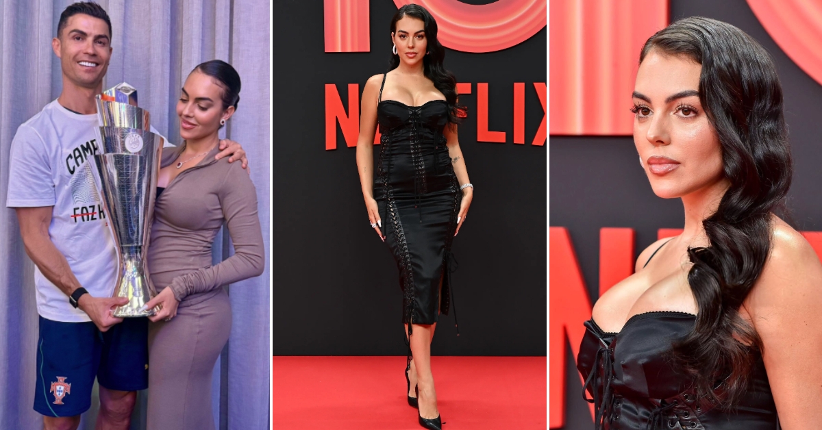 За настанот во Мадрид, 31-годишната вереница на Кристијано Роналдо избра црн припиен фустан инспириран од долна облека. Свилената креација, која ѝ ја истакна фигурата, доаѓа од колекција од 2019 година на Долче и Габана, а Џорџина ја искомбинира со црни салонки.
