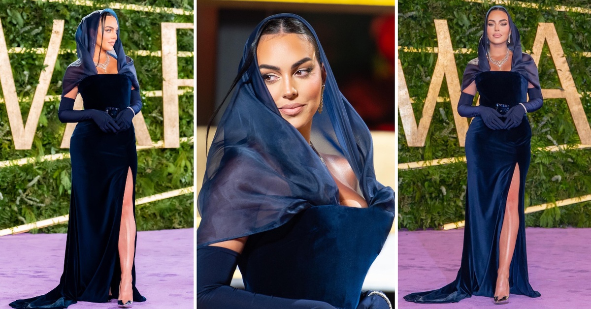 28-годишниот модел ја имаше честа да додели награда на манифестацијата „Joy Awards 2023“. За оваа пригода, девојката на Кристијано Роналдо носеше кадифен фустан со шлиц.
