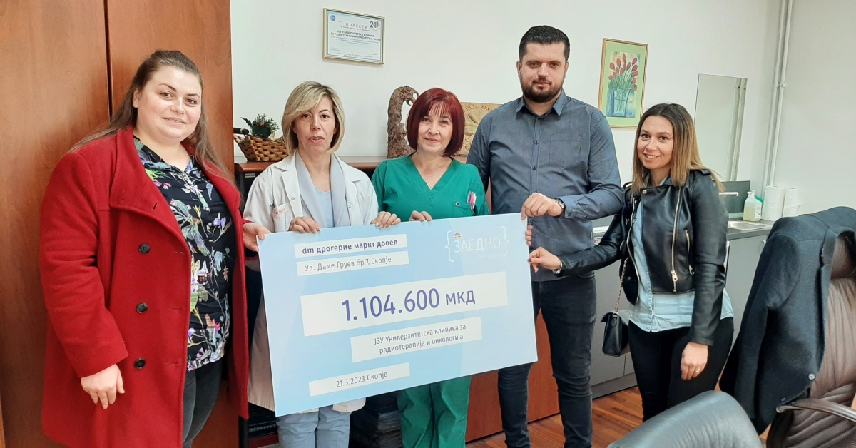 Со цел давање придонес во подобрување на условите при третманот и грижата за женското здравје, во месец март – месец посветен на жената, компанијата dm дрогерие маркт донира повеќе од еден милион денари во медицинска опрема и апарати за подобрување на условите за работа во гинеколошкиот оддел при ЈЗУ Универзитетска клиника за радиотерапија и онкологија во Скопје.