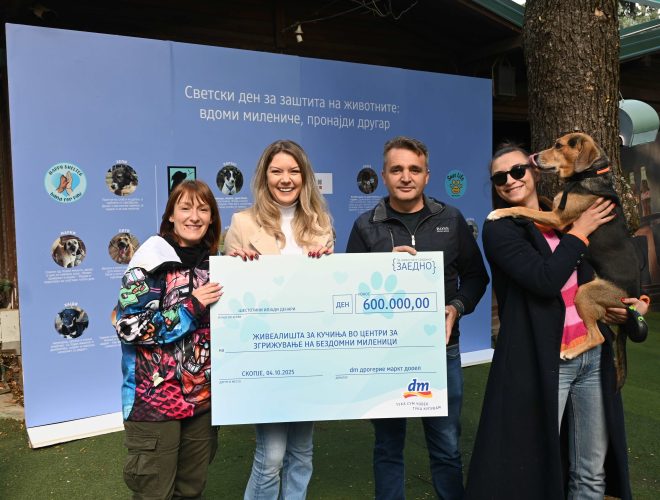Dm drogerie markt токму од оваа причина уште еднаш ја потврди својата заложба дека е компанија која се грижи не само за луѓето, туку за целата заедница. Преку донацијата за згрижување на кучиња за четири прифатилишта за миленици dm испрати порака дека грижата за нашите крзнени пријателчиња почнува од нас самите, и од она колку сме ние подготвени да направиме за нив.