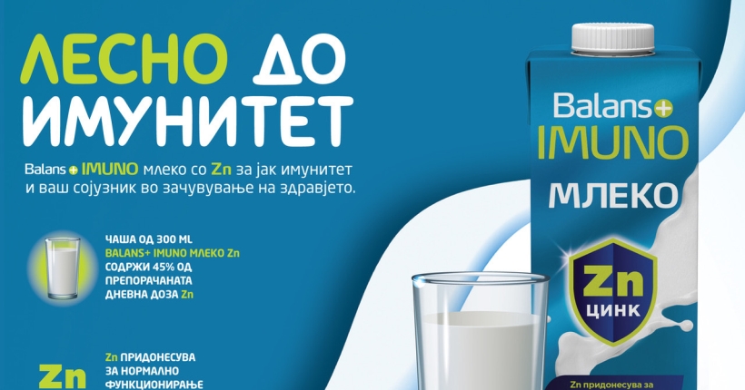 Млекото со цинк е проширување на Баланс+ портфолиото, од кое е дел и неодамна пласираниот функционален јогурт, Баланс+ Имуно, со истакнати нутритивни карактеристики и збогатен со култури кои имаат позитивен ефект за одржување здрав имун систем.