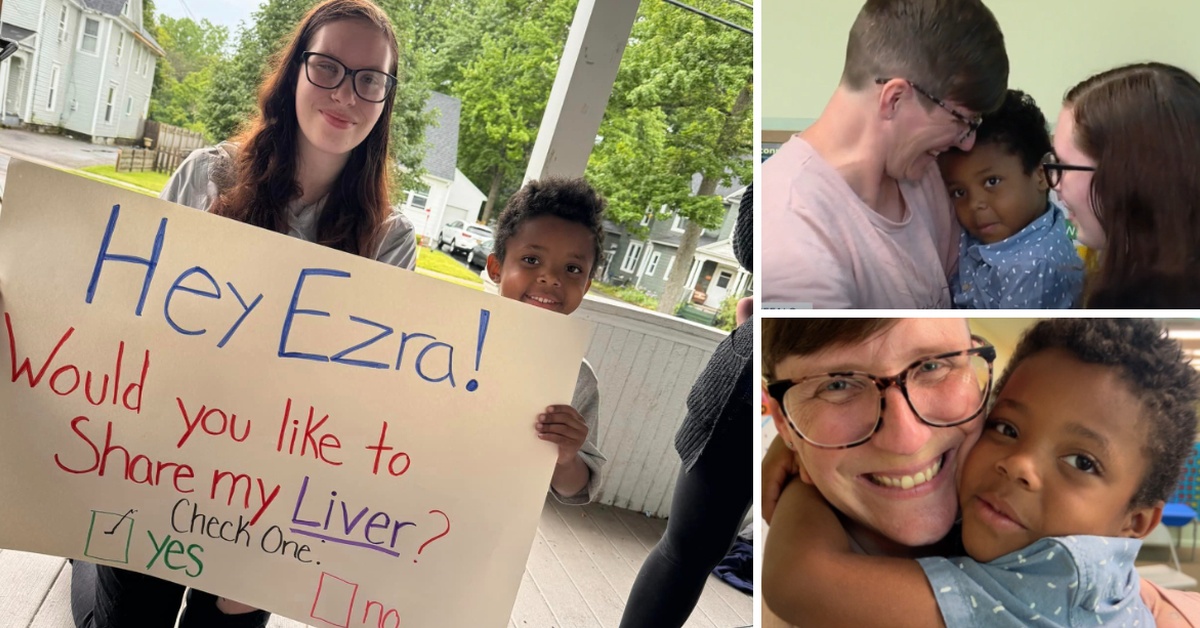 Кариса Фишер го посети 5-годишниот Езра во неговиот дом за да му соопшти дека ќе му донира дел од својот црн дроб.