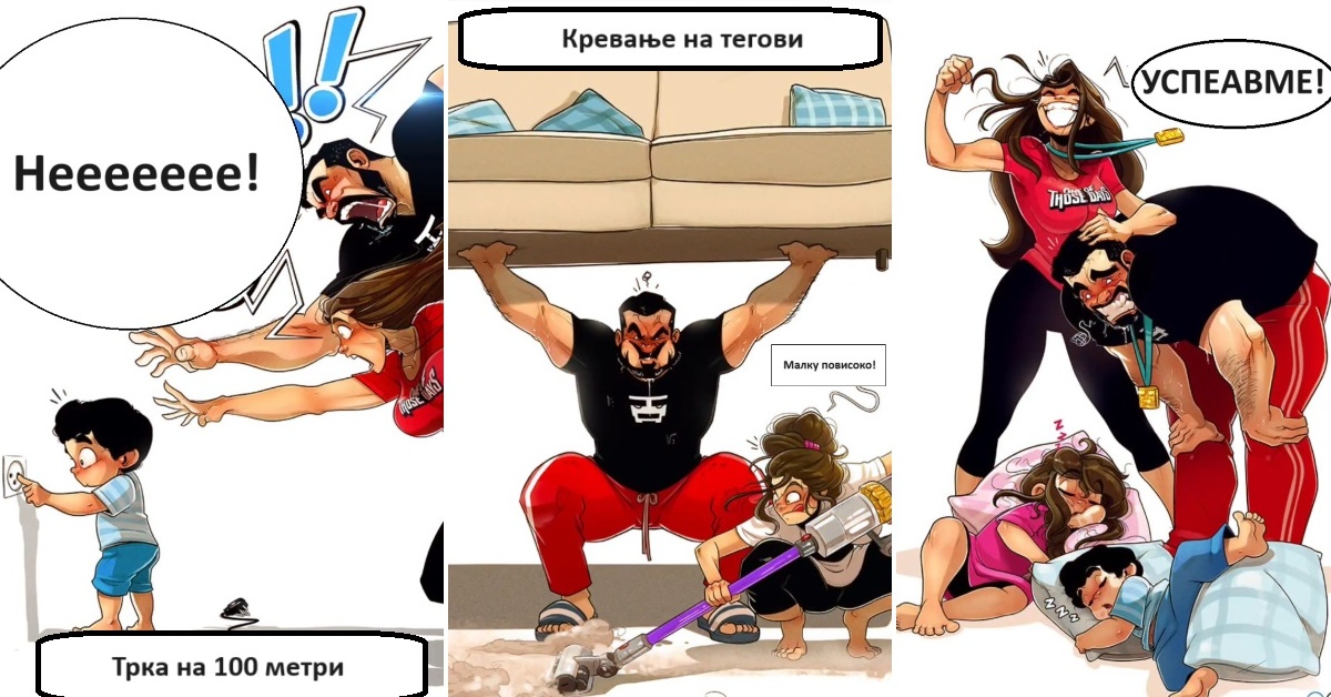 Талентираниот артист споделува илустрации од своето секојдневие и животот со сопругата Маја и двете мали деца. По повод Олимпијадата, која до вчера се одржуваше во Париз, Девир создаде мини колекција од домашни ситуации кои го потсетиле на дисциплините од ЛОИ.
