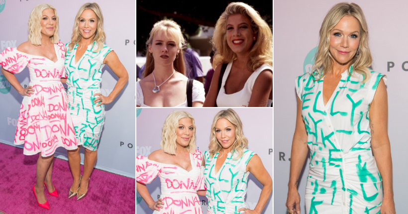 Двете ѕвезди од „Беверли Хилс 90210“ носеа бели фустани по кои беа испишани имињата на ликовите кои ги толкуваа во серијата – „Дона“ и „Кели“.