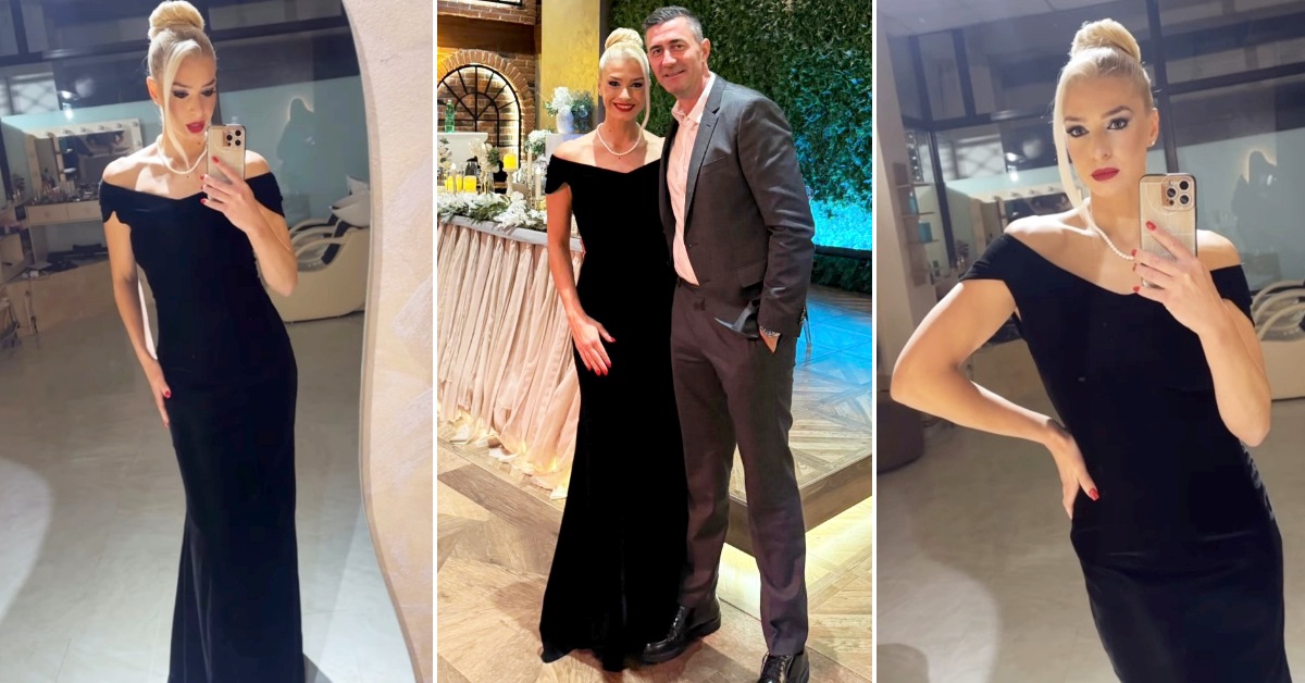 Дотерани на свадба: Едина Муса атрактивна во црн фустан покрај Мачка 8 месеци по породувањето