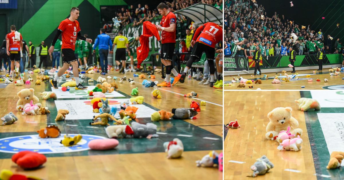 Стотици љубители на ракометот одговорија на пораката за хумана акција на РК Еурофарм Пелистер и на полувремето на дербито со Вардар во Суперлигата фрлија на теренот плишени мечиња наменети за деца од ранливи категории. Крзнените играчки ќе усреќат многу детски лица за време на божиќните празници.