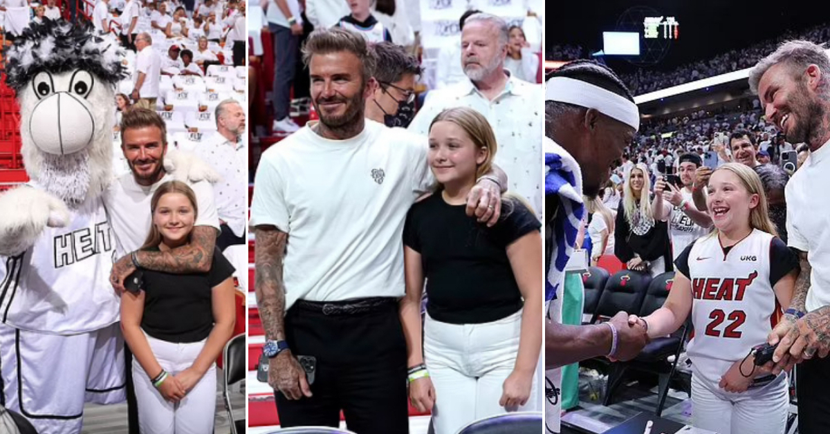 Дејвид Бекам се дружеше со ќерката Харпер Севен на натпреварот од НБА лигата меѓу Мајами Хит и Атланта Хоукс.