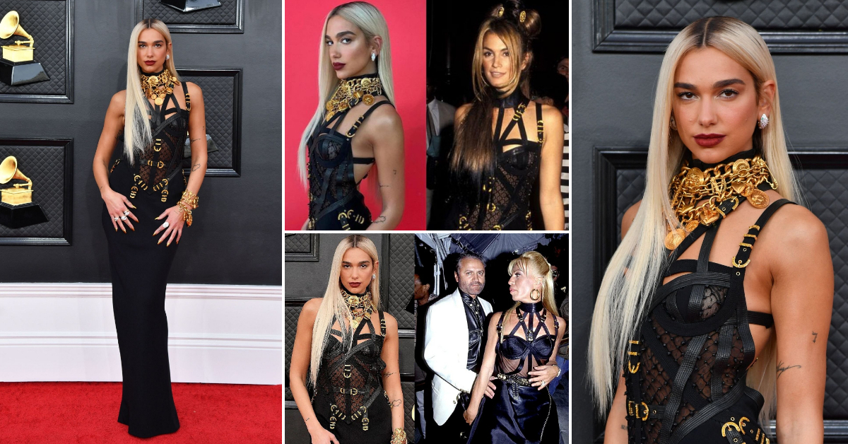 Винтиџ фустанот на Липа доаѓа од колекција на Версаче од пред 30 години, а потсетува на иконските креации носени од Донатела Версаче и Синди Крафорд во 1992 година.