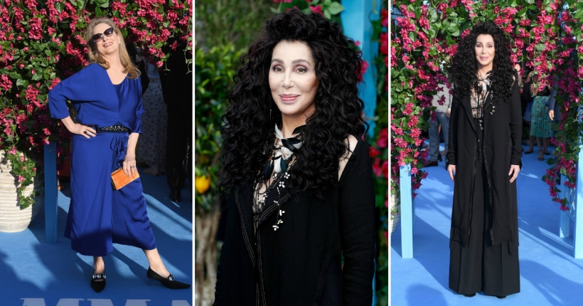 72-годишната Шер и 69-годишната Мерил мамеа погледи на синиот тепих во Лондон по повод прикажувањето на „Mamma Mia! Here We Go Again“.