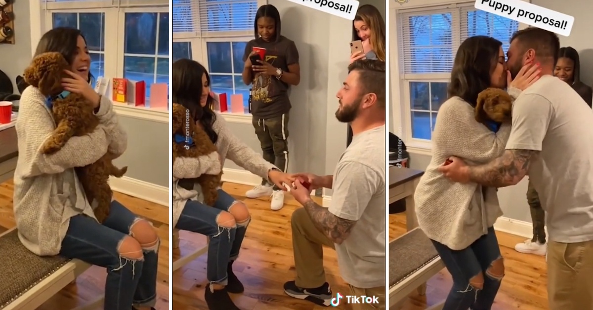 Среќната славеничка доби двојно изненадување од саканиот – кученце и веренички прстен.