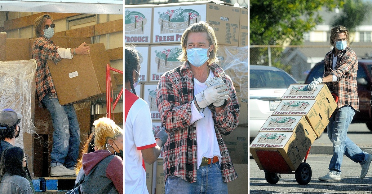 Бред Пит ги засука ракавите и помагаше во доставувањето на храна за семејства од ранливи категории.
