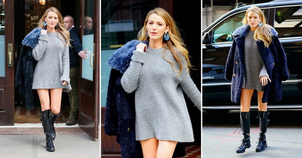 Актерката, која стекна светска слава со серијата „Gossip Girl“, пред својот хотел во Њујорк се појави во комбинација со џемпер-фустан, крзнено палто и гламурозна верзија на војнички чизми.