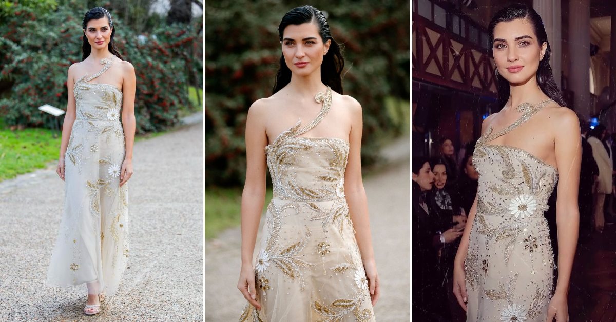 42-годишната турска актерка шармираше во креација со цветови создадена токму од либанскиот дизајнер. За својот изглед, таа доби море од комплименти.