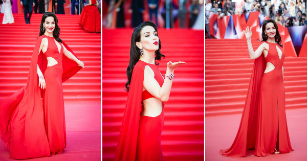 На затворањето на Меѓународниот филмски фестивал во Москва, 39-годишната актерка блесна во црвена креација од Наим Кан и накит од Chopard.