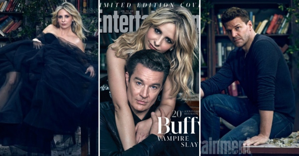 Насловната страница секако им припадна на Сара Мишел Гелар (Бафи) и Дејвид Боријаназ (вампирот Ејнџел).