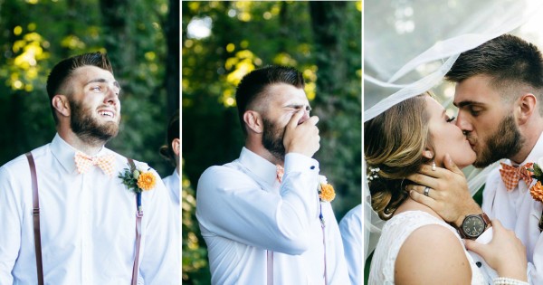 Реакцијата на заљубениот младоженец разнежни многу срца и изнуди коментари дека е доказ за постоењето на вистинска љубов.