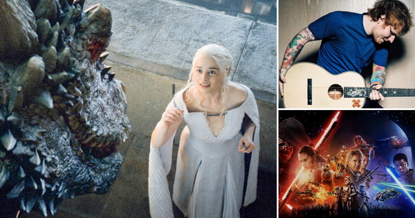 На листата на славни личности од светот на шоу-бизнисот на врвот се наоѓа Ед Ширан. „Game of Thrones“ е најпопуларна ТВ серија, додека долгоочекуваниот филм „Star Wars: The Force Awakens“ е најспоменуван меѓу филмските остварувања.