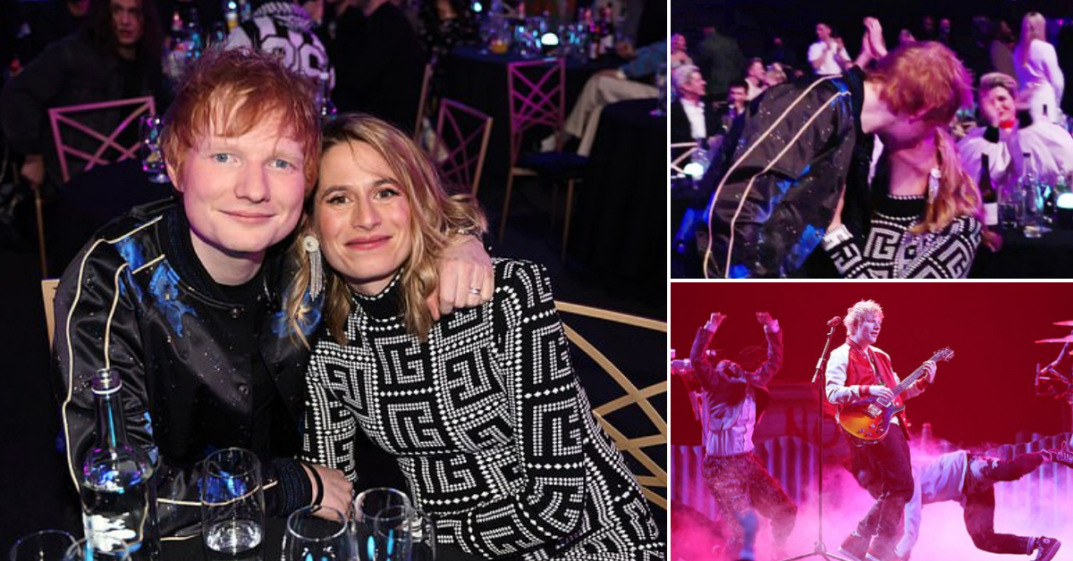 Ед Ширан ја бакна сопругата Шери по добивањето на награда и настапи на сцената на Brit Awards