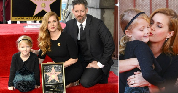 Ејми Адамс со ќеркичката и сопругот на примањето на ѕвездата на холивудската Патека на славните