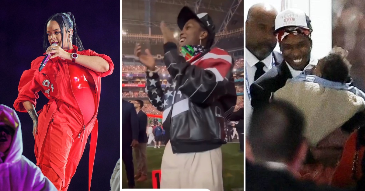 Ејсап Роки од публиката ја бодреше саканата додека таа ја забавуваше публиката на полувремето на натпреварот. Во видео објавено од NFL, познатиот рапер аплаудира и го снима настапот на Ријана со мобилниот телефон.