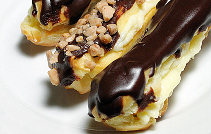 - Експериментирајте. Користете пудинг со вашиот омилен вкус или наполнете ги еклерите со ваш домашен фил. Врз чоколадниот прелив можете да посипете чоколадни трошки или ситно исечкани бадеми.