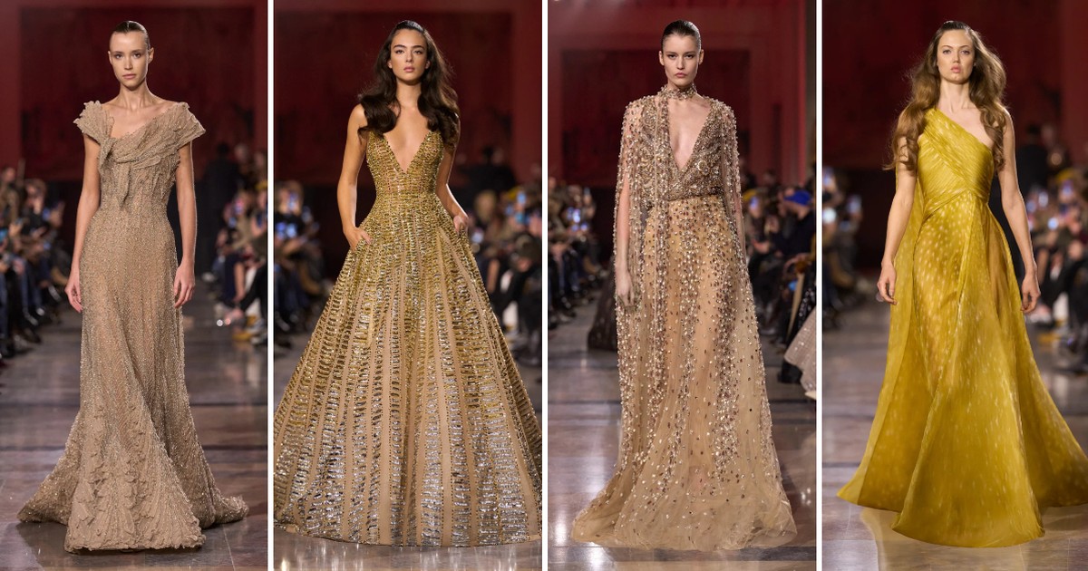 „Насликана со нежни пигменти, исцртана низ транспарентни слоеви и украсена со извонредни детали: колекцијата за висока мода на Ели Сааб за пролет/лето 2025 го спојува мајсторството на високата мода со илузијата на уметноста, откривајќи ремек-дело кое како да не е од овој свет.
