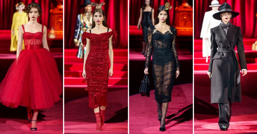 Ревијата на модните ветерани Доменико Долче и Стефано Габана беше како поделена во неколку сегменти. Од драматични креации со пулејки, екстравагантен брокат и леопардски дезен до минимализам, машки кроеви, црни креации, гламурозни ноќници, па и невестински фустани... славното дуо претстави над 100 нови изгледи.