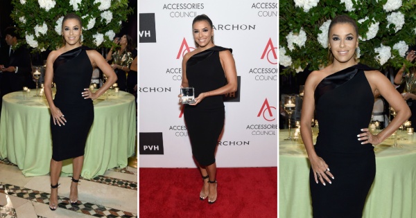 На настанот, ѕвездата од „Очајни домаќинки“ шармираше во мало црно фустанче на едно рамо од Жорж Чакра и сандали од Маноло Бланик.