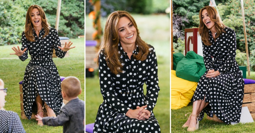 На лансирањето на дигитална платформа, 38-годишната сопруга на принцот Вилијам се појави во црно-бел фустан со точкест принт од дизајнерката Емилија Викстед.