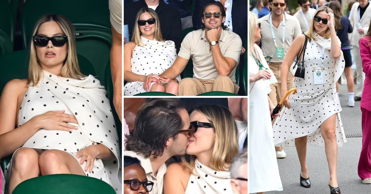 Ова е прво појавување на јавен настан на 34-годишната актерка по соопштувањето на веста дека го очекува своето прво дете. Марго носеше бела креација со точкест принт и црни обувки.