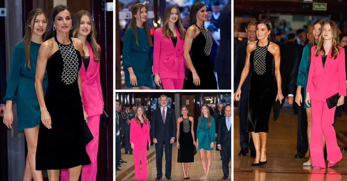 15-годишната Леонор, која ќе биде идна кралица на Шпанија, изгледаше модерно во розов костум. Нејзината 15-годишна сестра Софија избра краток фустан на преклоп.