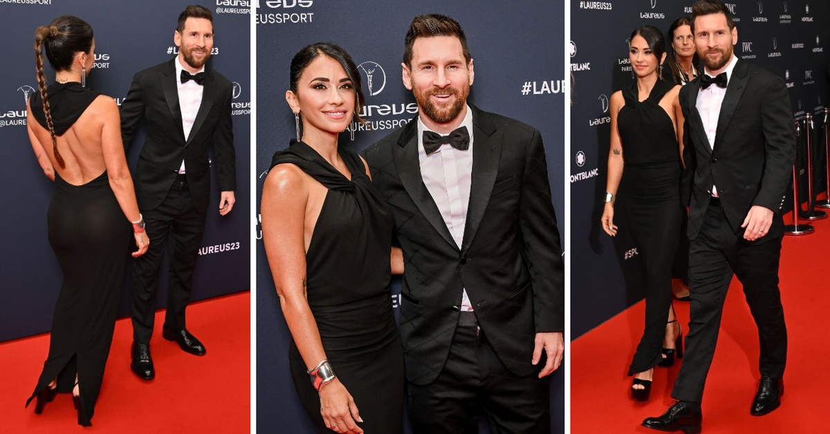 Елегантни во црно: Лионел Меси со сопругата Антонела на свеченост во Париз каде доби награда