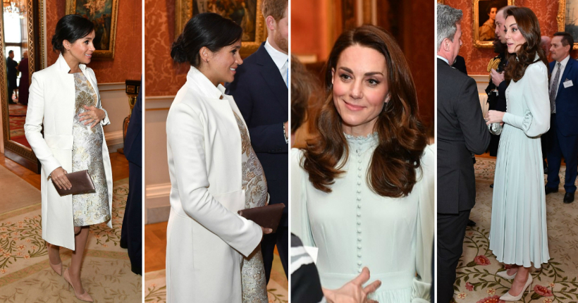 Војвотката од Сасекс шармираше во фустан со брокат и бело палто од Аманда Вејкли, кое првпат го носеше минатата година.