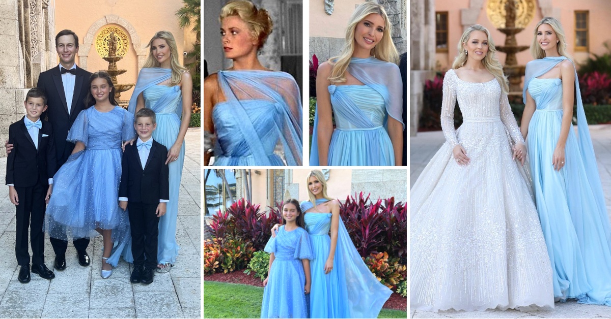На прославата во ресортот Мар-а-Лаго во Флорида, 41-годишната ќерка на Доналд Трамп шармираше во сина креација инспирирана од фустан кој принцезата Грејс Кели го носеше во филмот „To Catch a Thief“.